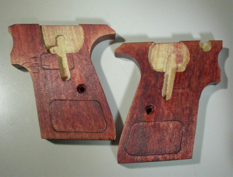 乾燥してからグリップ内の部品のスペースを彫ります。